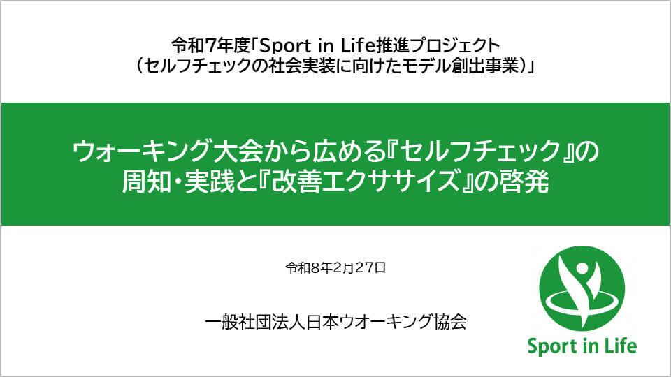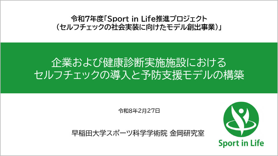 令和7年度「Sport in Life推進プロジェクト(セルフチェックの社会実装に向けたモデル創出事業)」の最終報告書はこちら