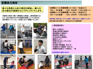 ①従業員向け体力測定、健康測定会開催(体験会含む)・講師派遣