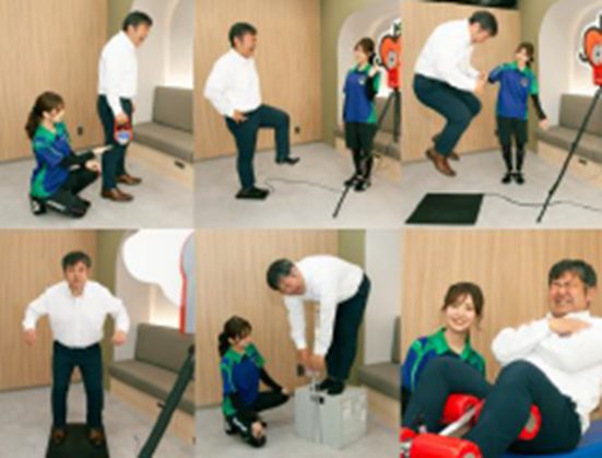 企業・自治体などへ出張し、体組成・柔軟性・筋力・姿勢などをその場で測定し、結果を即時フィードバック。測定結果に基づく運動指導を行い、イベント感覚で楽しみながら従業員の運動意欲向上と職場の健康意識醸成を促進します。