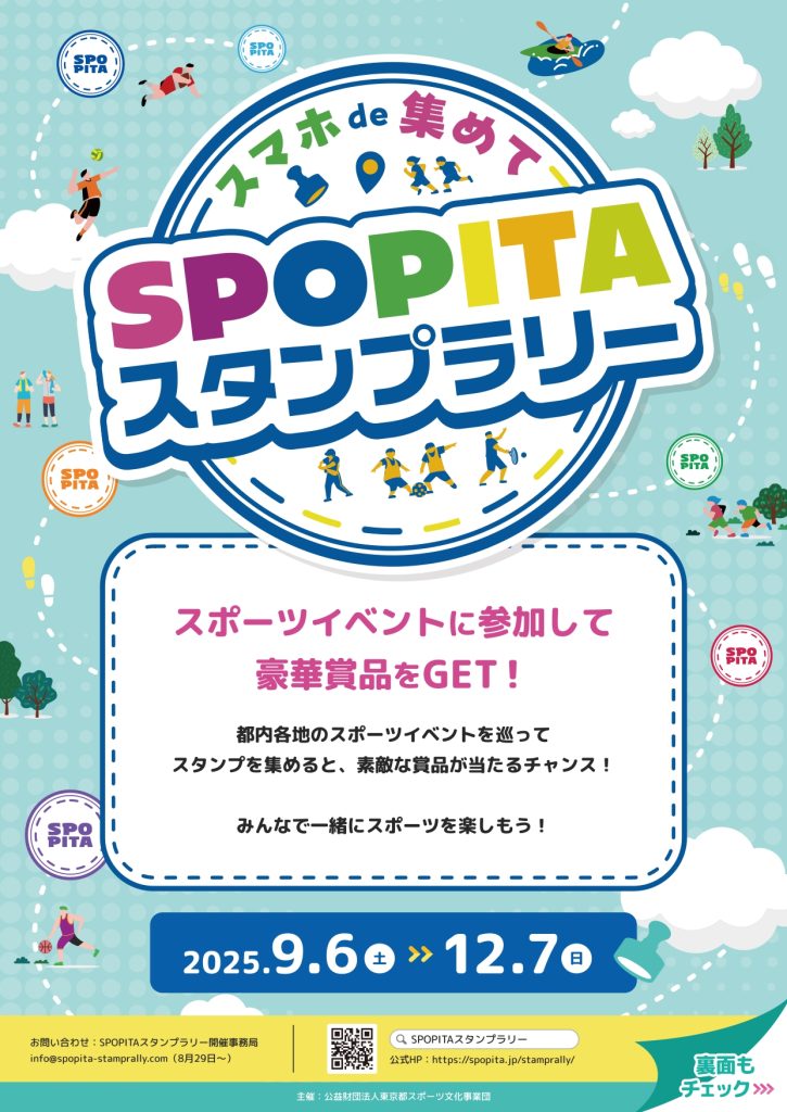 「スポーツで創る、東京の未来」をスローガンに、「スポーツフィールド・東京」の牽引役として様々な事業を展開する公益財団法人 東京都スポーツ文化事業団(渋谷区・千駄ヶ谷、以下「東京都スポーツ文化事業団」)は、スポーツイベントが盛んになる秋に、より多くの方にスポーツを楽しんでもらうため、都内各地で開催されるスポーツイベントを巡るキャンペーン「SPOPITA(スポピタ)スタンプラリー2025」を開催いたします。